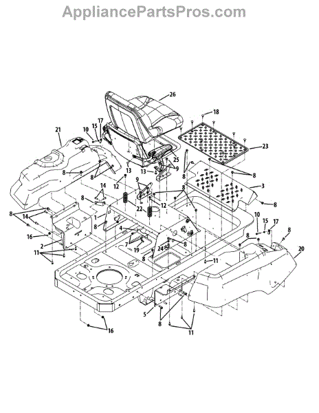 This is a versatile screw designed with flanged hex head and double-lead threads. It is a high-low self-tapping screw with one thread that is high and the other low for easier penetration. The twin threads also reduce the amount of material displaced when the screw is driven into the material. This type of screw also creates a firmer grip. This screw can also be used to secure a newly installed front cover or grill. This part is available as an individual replacement part. It is a genuine OEM part for use with specific models of snow throwers, lawn tractors, electric mowers, chippers, and log splitters from Bolens, Cub Cadet, Craftsman, Poulan, Ryobi, Toro, MTD, Troy-Bilt, Yard Machines, and Yard-Man.