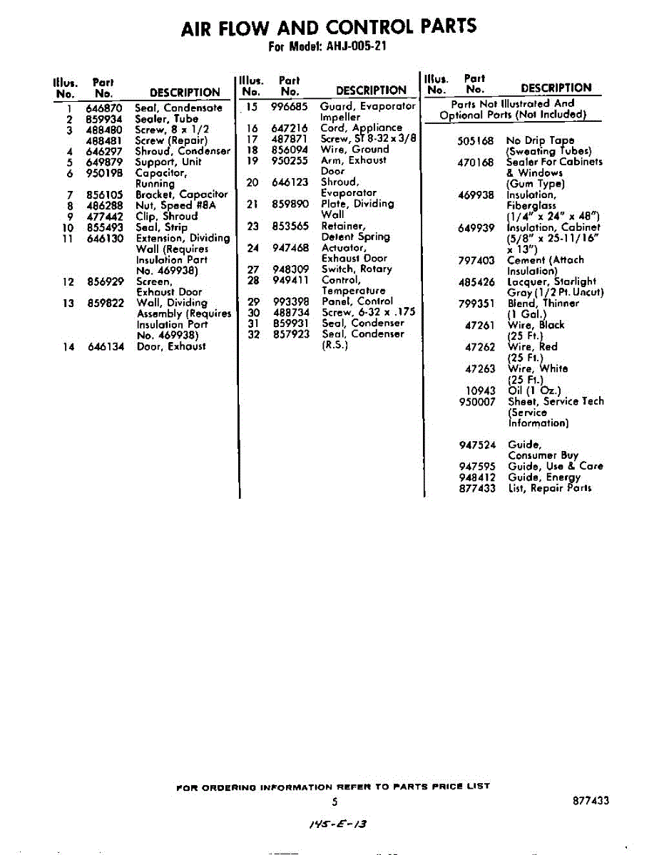 Parts for Whirlpool AHJ00521: 05 - Optional Parts