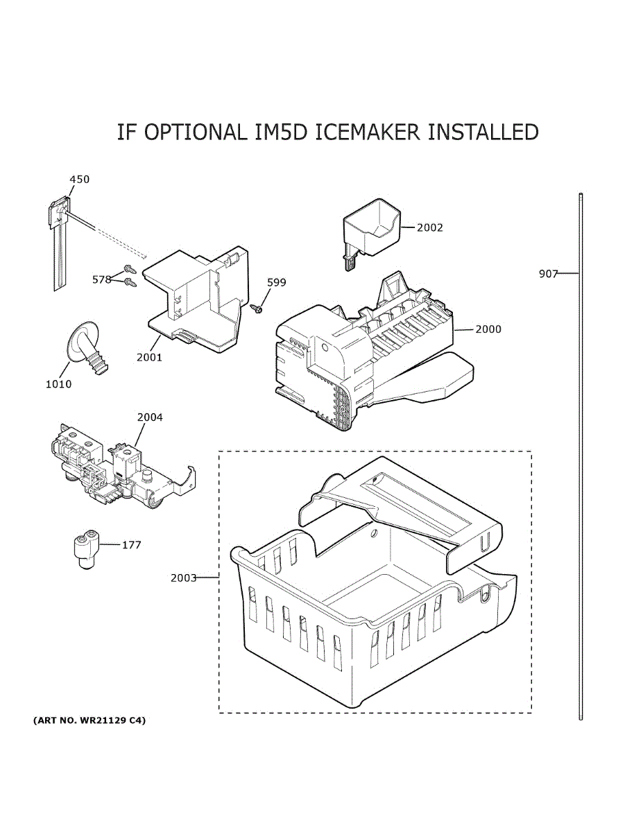 Stores ice made by your icemaker and delivers it when dispensing. Replace if cracked, broken, or worn to restore proper ice storage and delivery.
