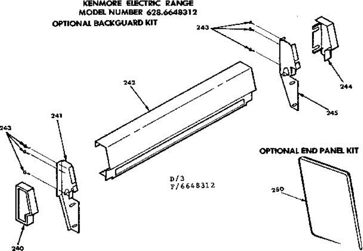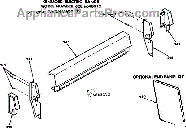 Parts for Kenmore 628.6648312 (6286648312, 628 6648312): Optional Backguard Kit / End Panel Kit Parts