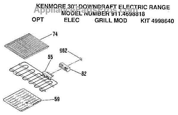 Parts for Kenmore 911.4698818 (9114698818, 911 4698818): Opt Elec Grill Mod Kit 4998640 Parts