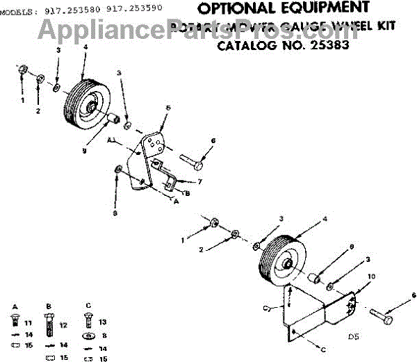 Parts for Craftsman 917253590: Optional Equipment Gauge Wheels Kit Parts