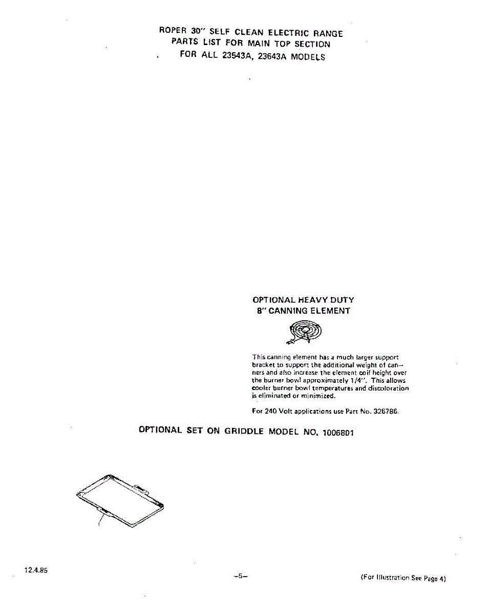 Parts for Roper 2364W3A: 05 - Optional Equipment Parts