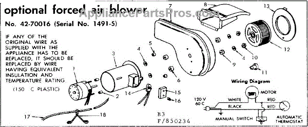 Parts for Kenmore 155.850234 (155850234, 155 850234): Optional Forced Air Blower Parts