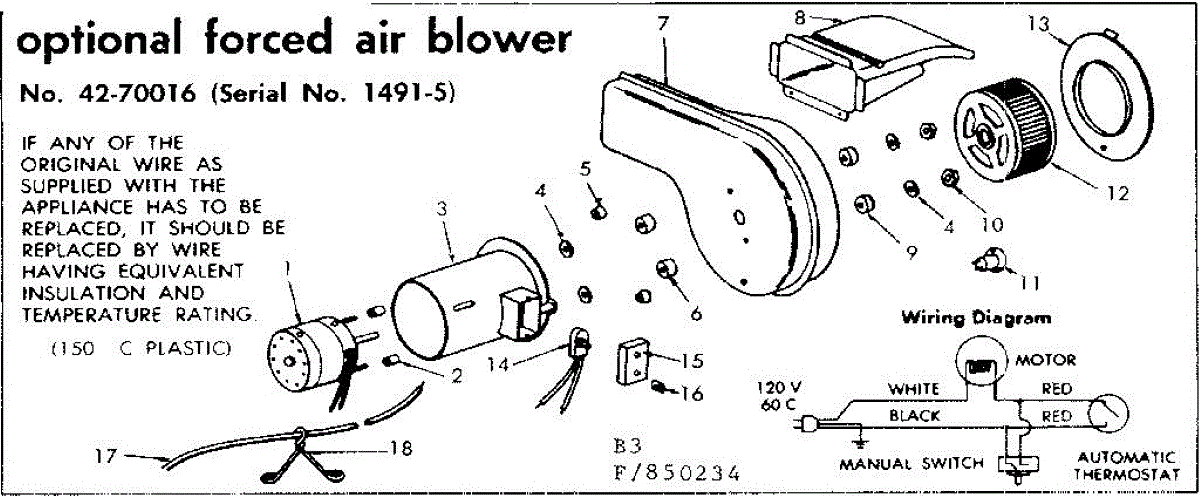 Parts for Kenmore 155.850274 (155850274, 155 850274): Optional Forced Air Blower Parts