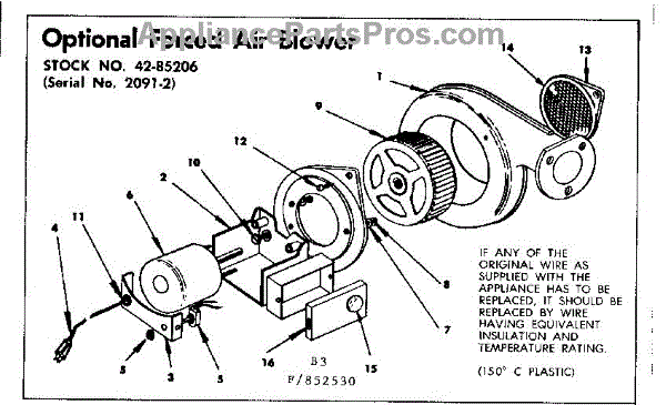 Parts for Kenmore 155.852530 (155852530, 155 852530): Optional Forced Air Blower Parts