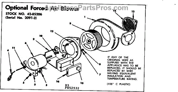 Parts for Kenmore 155.852532 (155852532, 155 852532): Optional Forced Air Blower Parts