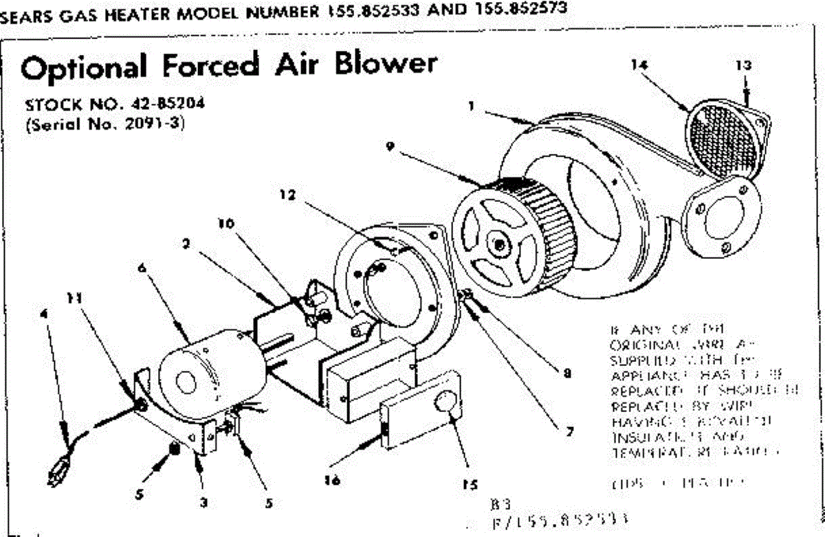Parts for Kenmore 155.852533 (155852533, 155 852533): Optional Forced Air Blower Parts