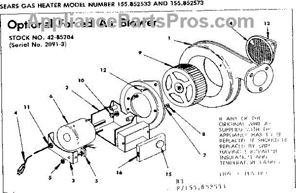 Parts for Kenmore 155.852573 (155852573, 155 852573): Optional Forced Air Blower Parts