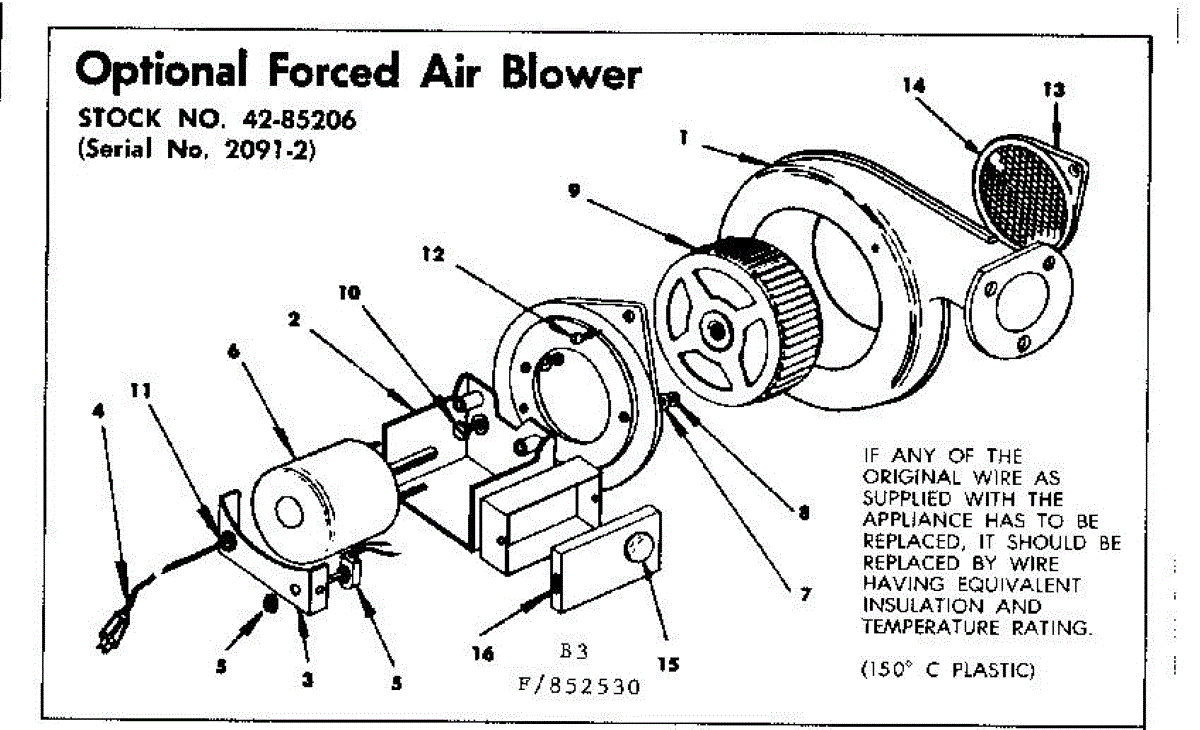 Parts for Kenmore 155.852640 (155852640, 155 852640): Optional Forced Air Blower Parts
