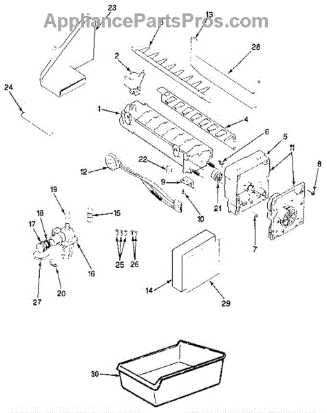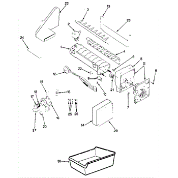 • Works with the ice maker's motor/gear assembly to advance cubes into the bin.