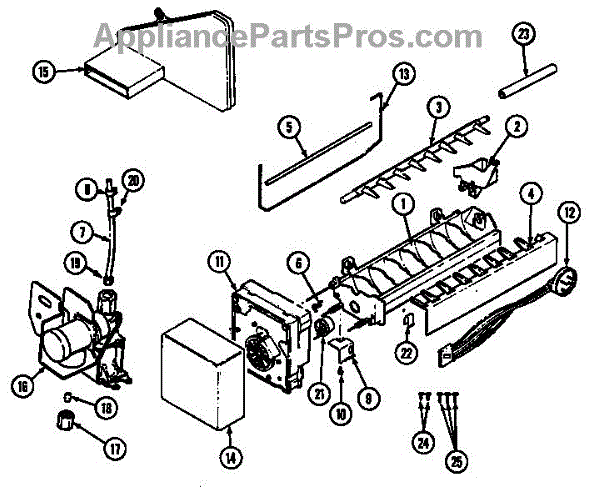 The Replacement Icemaker is an OEM replacement part for Whirlpool made refrigerators including Whirlpool, Amana, Maytag, and many others. It is a component responsible for producing ice cubes or crushed ice, ensuring a constant supply of fresh ice for your convenience. Measuring approximately 11 inches long and 5 inches wide, this ice maker assembly is made of durable plastic and metal