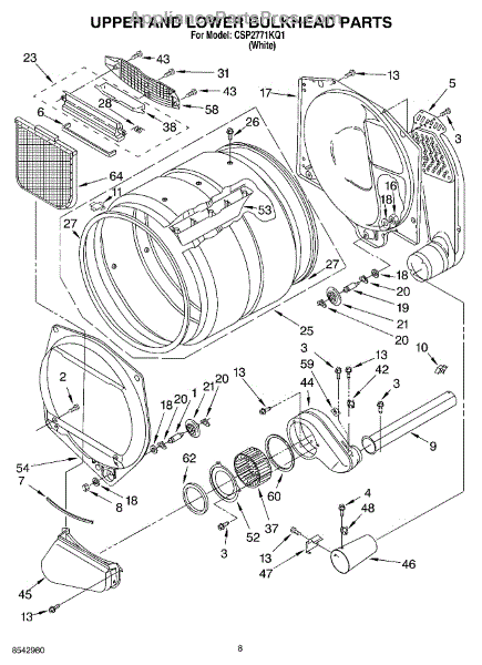 This bulkhead is the front interior panel that supports the drum and helps direct dryer airflow for efficient tumbling and exhaust. It restores proper drum alignment and airflow when the original panel is worn or damaged. What it does: