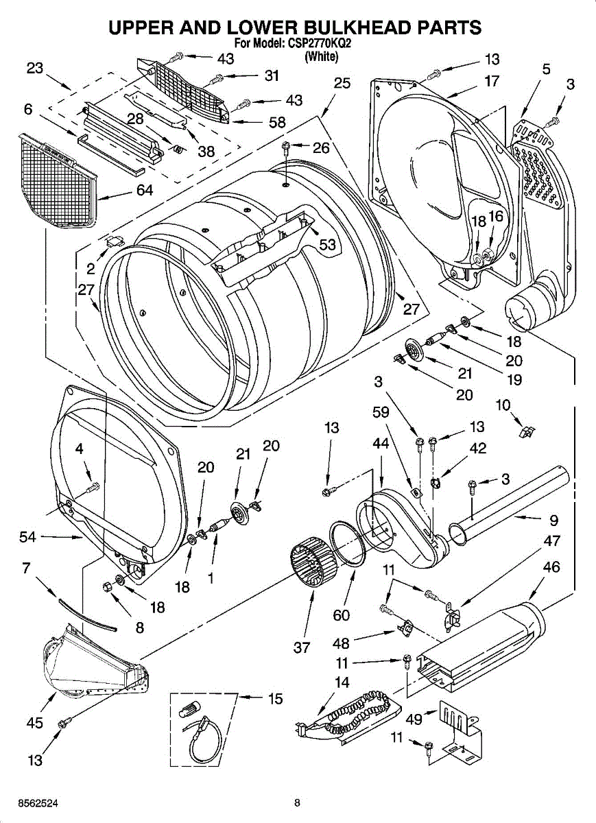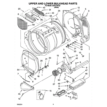 This front drum bulkhead is the stationary front panel that supports the dryer drum and seals the drum opening to maintain proper airflow and drum alignment for reliable drying performance. What it does: