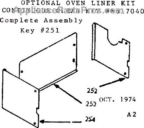 Parts for Kenmore 103.8517040 (1038517040, 103 8517040): Optional Oven Liner Parts
