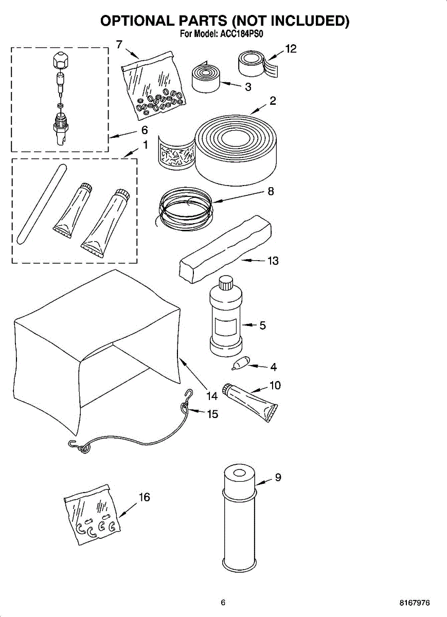 Parts for Whirlpool ACC184PS0: 04 - Optional Parts (Not Included) Parts
