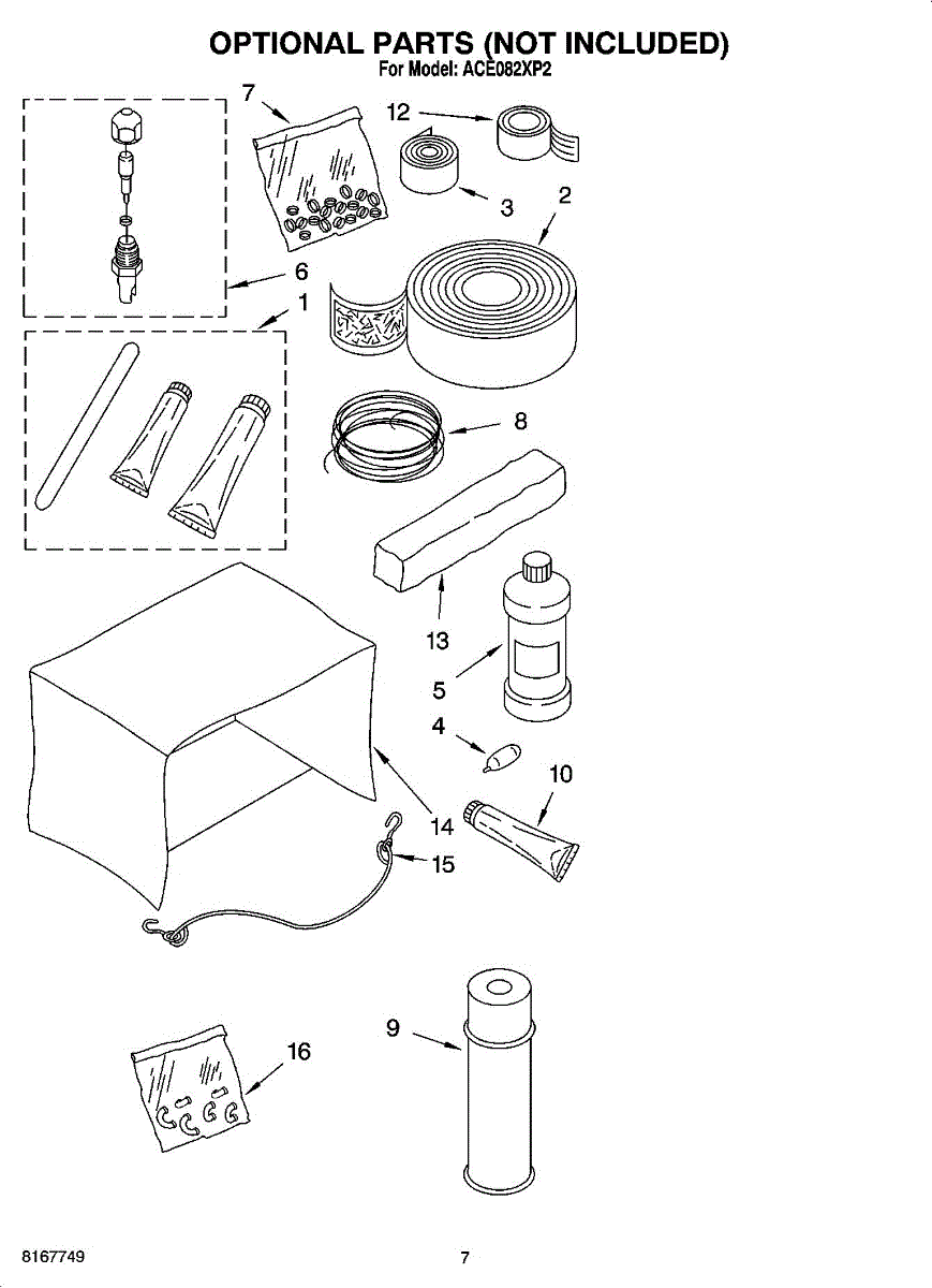 Parts for Whirlpool ACE082XP2: 04 - Optional Parts (Not Included) Parts
