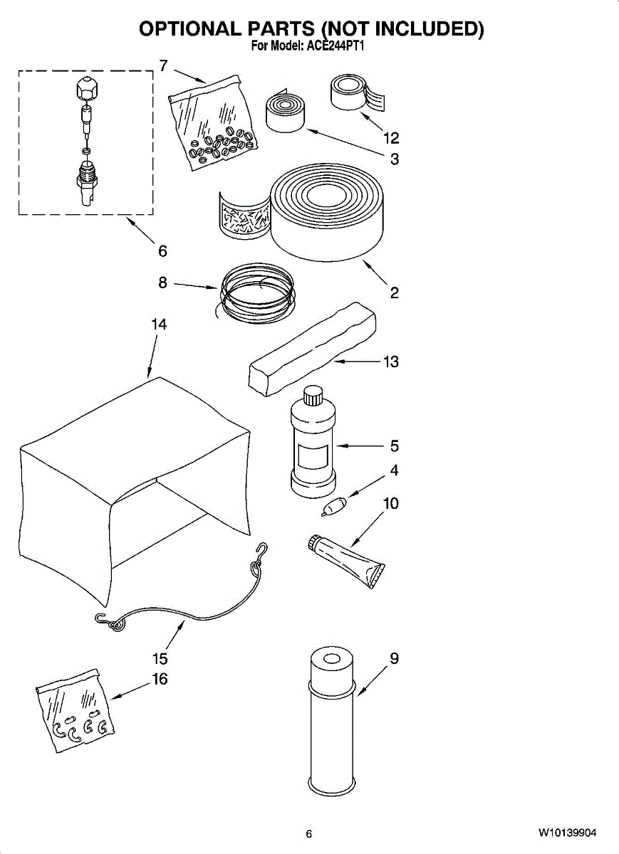 Parts for Whirlpool ACE244PT1: 04 - Optional Parts (Not Included) Parts