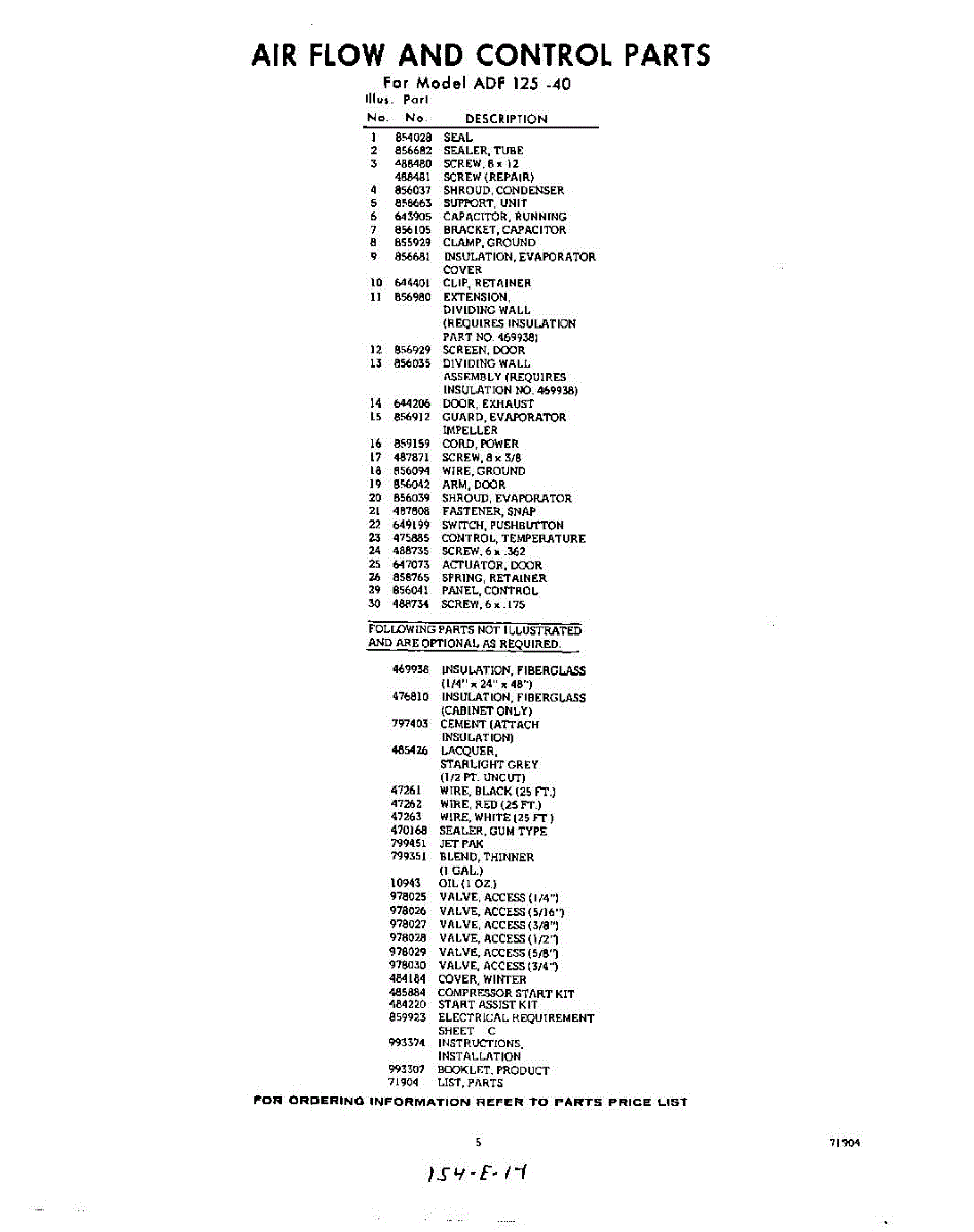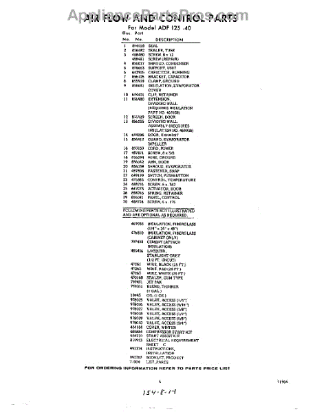 Parts for Whirlpool ADF12540: 05 - Optional Parts