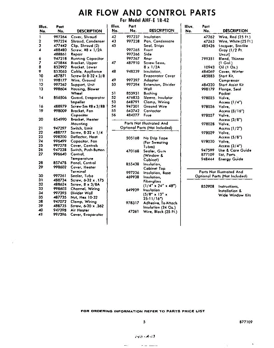 Parts for Whirlpool AHFE1842: 05 - Optional Parts