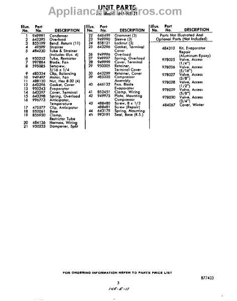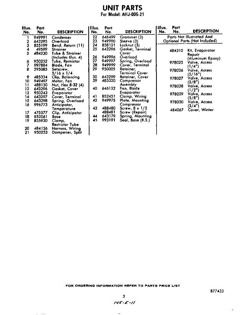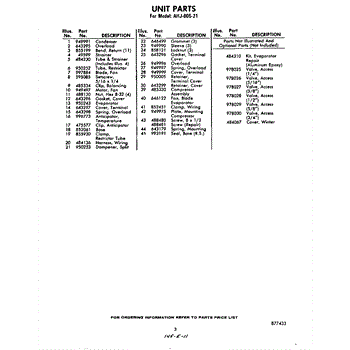 Parts for Whirlpool AHJ00521: 03 - Optional Parts