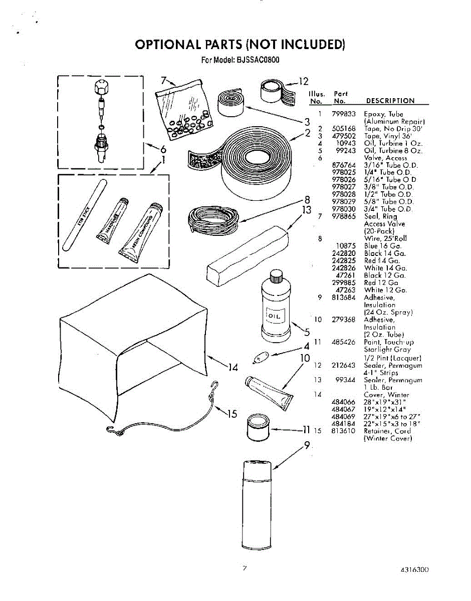 Parts for Whirlpool BJSSAC0800: 07 - Optional Parts