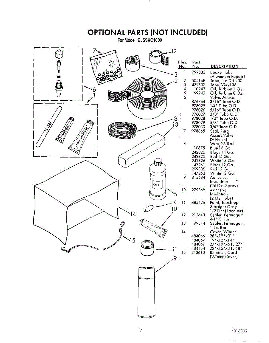 Parts for Whirlpool BJSSAC1000: 07 - Optional Parts
