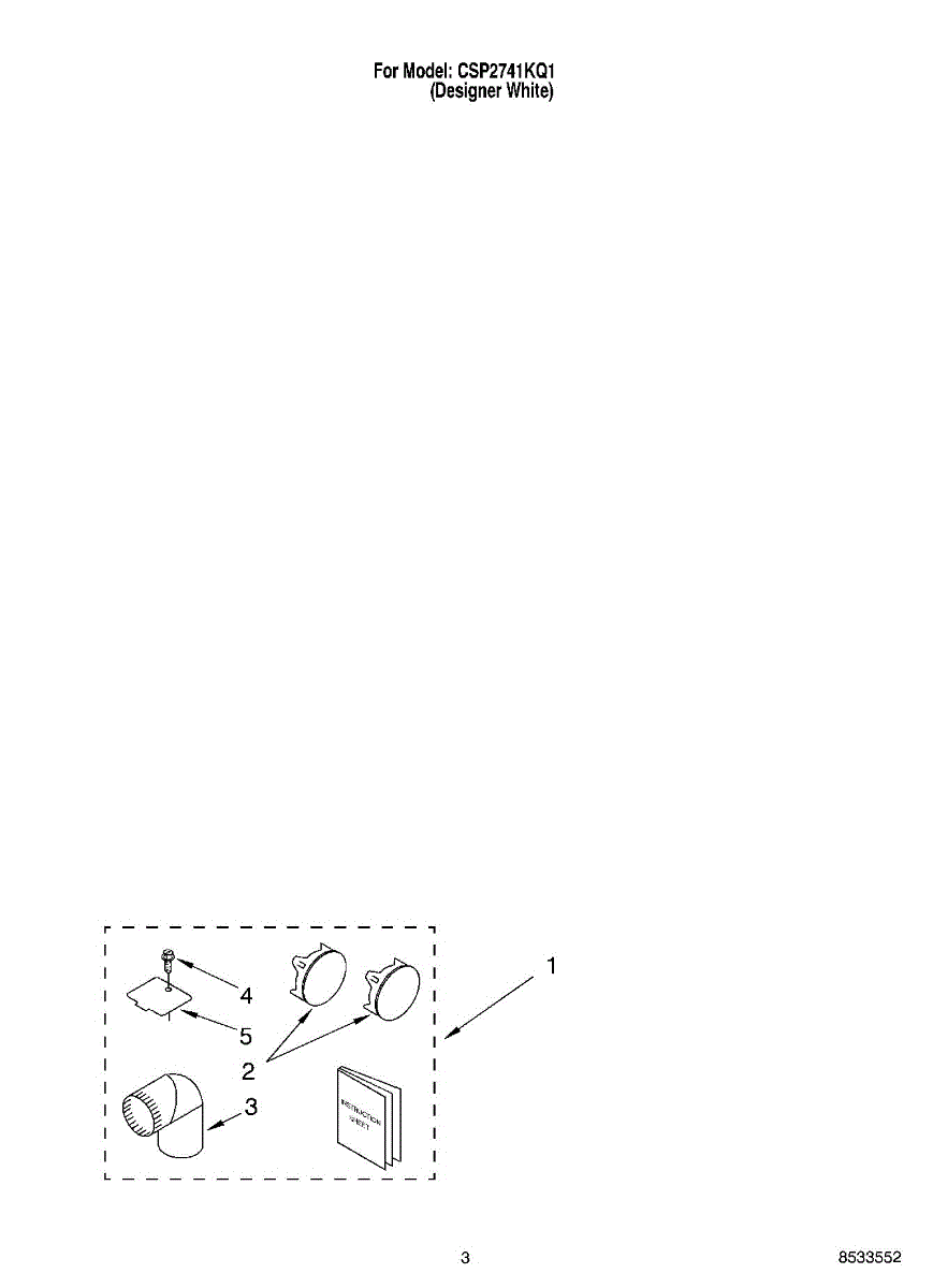 Side or bottom exhaust vent kit for dryers. Relocates dryer vent from rear to side or bottom position. Includes metal duct, hardware, and instructions.