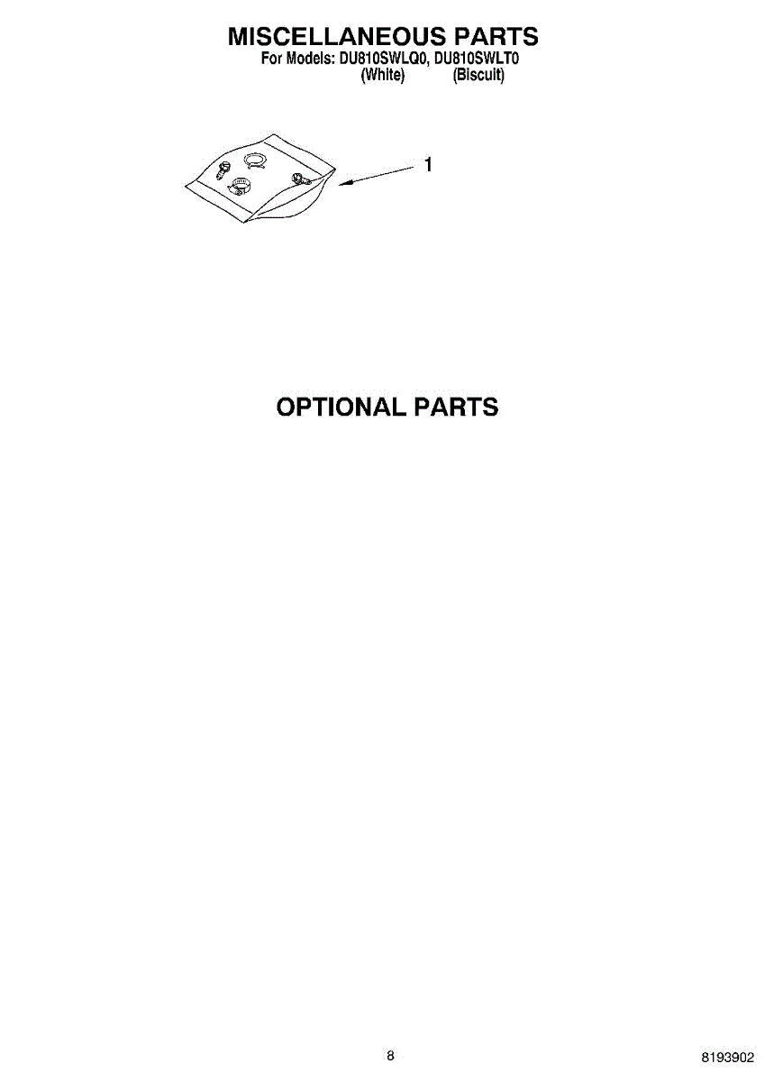 Parts for Whirlpool DU810SWLT0: 07 - Optional Parts Miscellaneous Parts