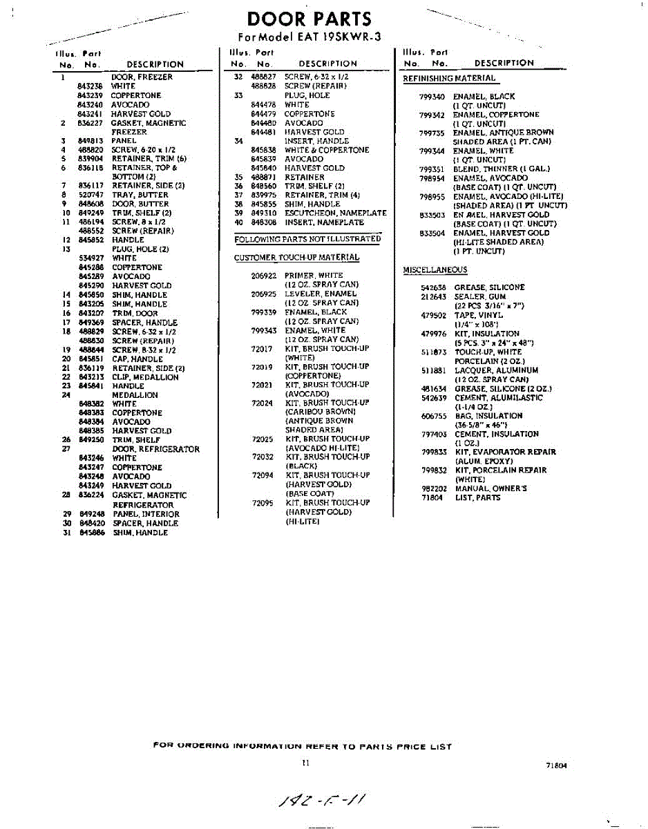 Parts for Whirlpool EAT19SKWR3: 11 - Optional Parts