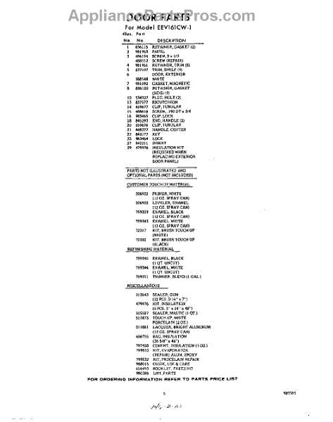 Parts for Whirlpool EEV161CW1: 05 - Optional Parts