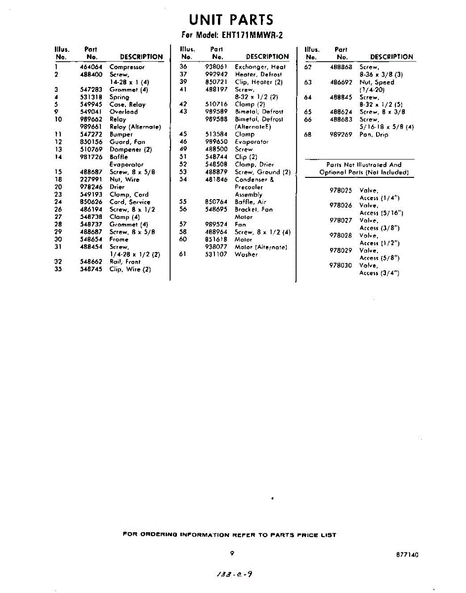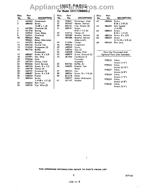 Parts for Whirlpool EHT171MMWR2: 09 - Optional Parts