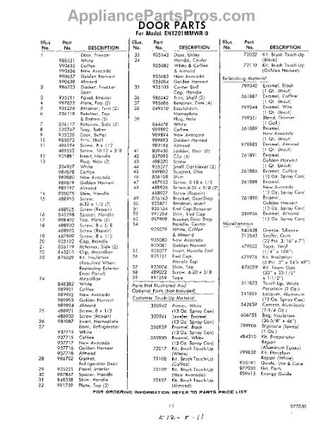 Parts for Whirlpool EHT201MMWR0: 11 - Optional Parts