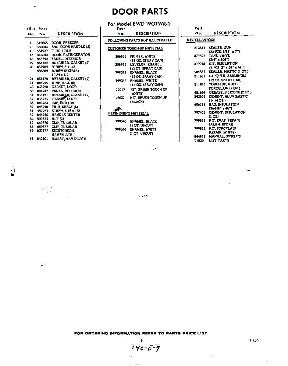 Parts for EWD19GTWR2