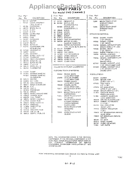 Parts for EWD21MMWR2