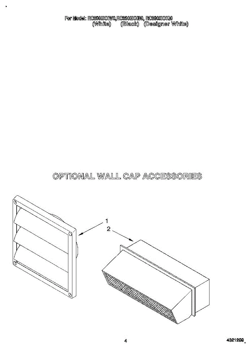Parts for Whirlpool RC8900XXW0: 03 - Optional Wall Cap Accessories Parts