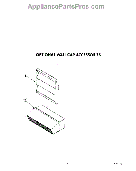 Parts for Whirlpool SC8900EXQ1: 03 - Optional Wall Cap Accessories Parts