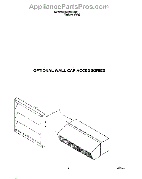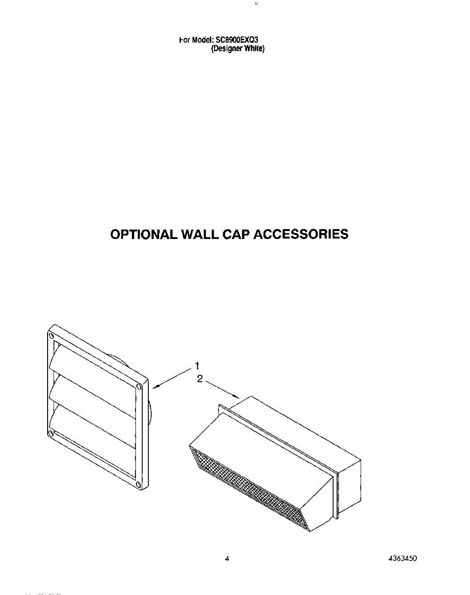 Parts for Whirlpool SC8900EXQ3: 03 - Optional Wall Cap Accessories Parts