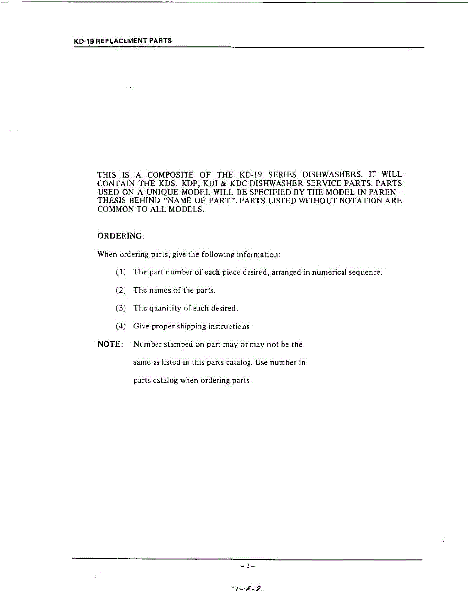 Parts for Kitchenaid KDI19: 02 - Ordering Parts