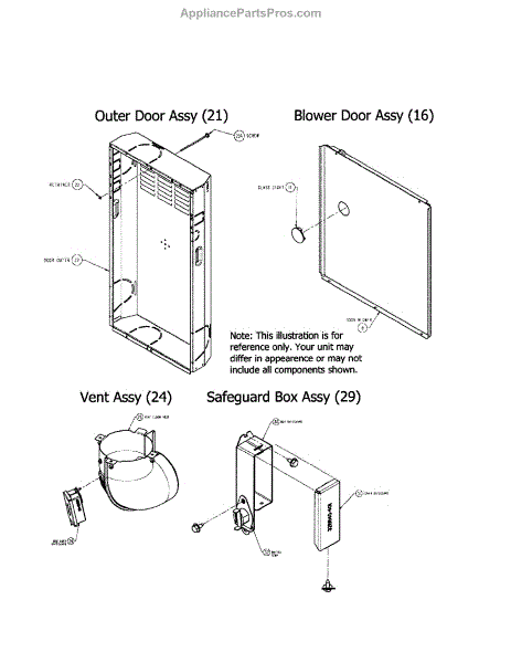 Parts for Carrier 58DLA13510016: Outer / Blower Door / Vent / Safeguard Parts