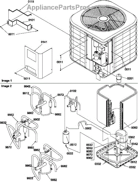 Parts for Amana RHA18A2B/P1180217C: Outer Cabinet / Compressor / Tubing Parts