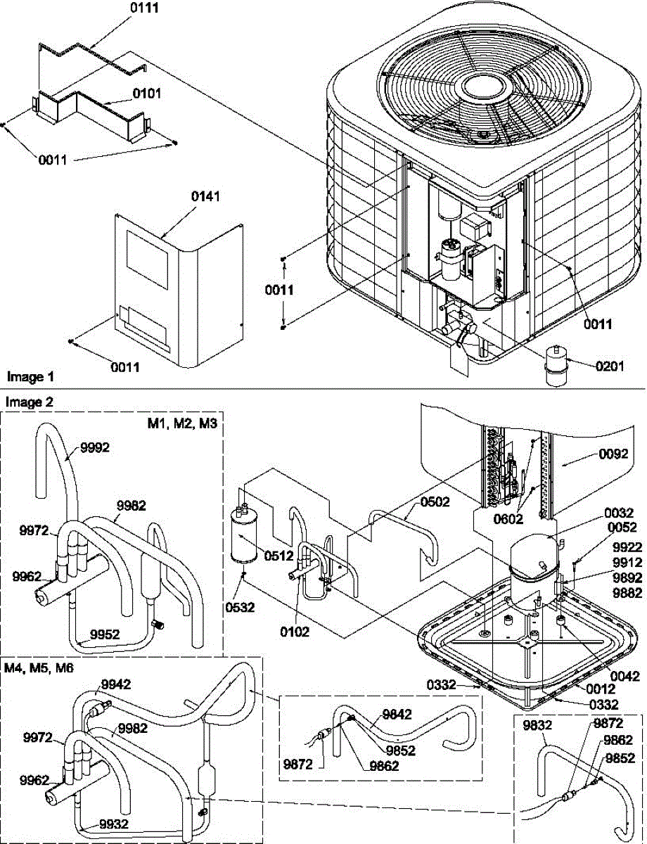 Parts for Amana RHA48A2B/P1180214C: Outer Cabinet / Compressor / Tubing Parts