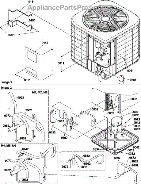 Parts for Amana RHA60A4B/P1180226C: Outer Cabinet / Compressor / Tubing Parts