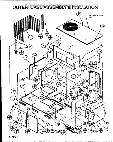 Parts for Amana PCA36B0004A/P1153605C: Outer Case Assembly & Insulation (Pca24b0002a / P1153601c) (Pca30b0002a / P1153602c) (Pca36b0002a / P1153603c) (Pca36b0003a / P1153604c) (Pca36b0004a / P1153605c) Parts