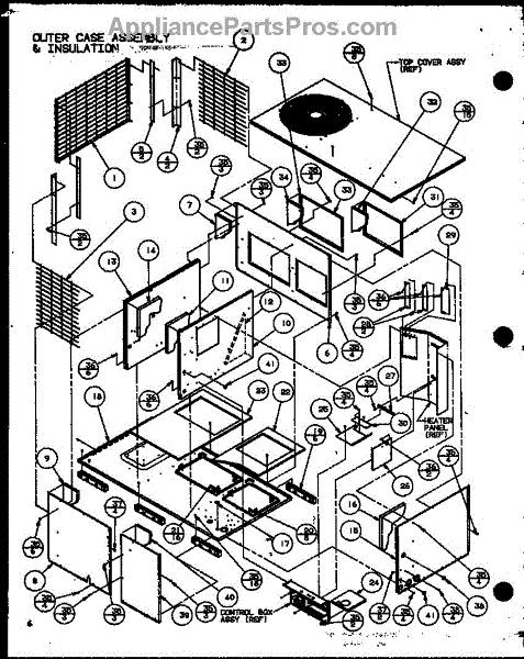 Parts for Amana SPCO36001A/P9999103C: Outer Case Assembly & Insulation (Spco24001a / P9999101c) (Spco30001a / P9999102c) (Spco36001a / P9999103c) (Spco36003a / P9999104c) Parts