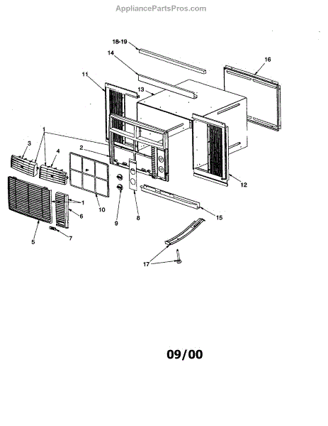 Parts for Amana AC10190A1D-P1225029R: Outer Case Assembly Parts