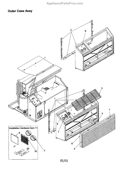 Parts for Amana TC11085W1-TC11085W1: Outer Case Assembly Parts