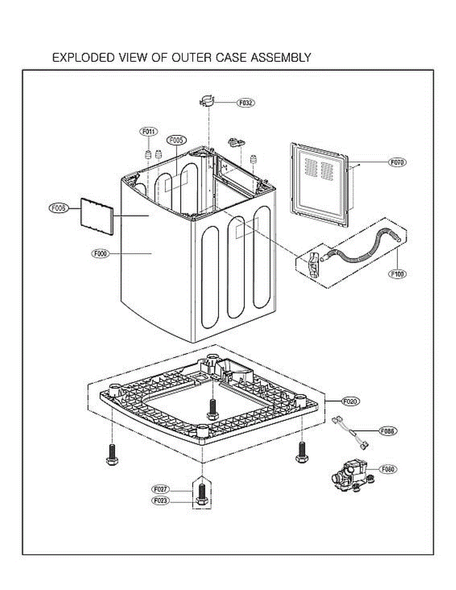Secures internal components to the washer frame. Replace if cracked, bent, or broken to restore proper alignment and stop rattling or sagging parts.