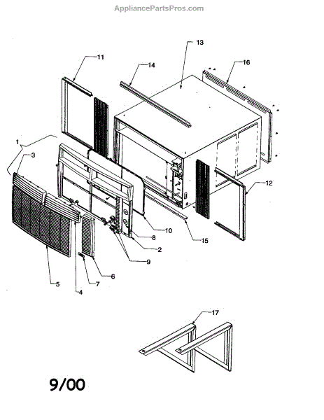 Parts for Amana AC18090C2D-P1225025R: Outercase / Curtain / Front Assembly Parts