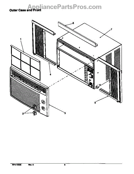 Parts for Amana AC05080M1D-P1225001R: Outer Case And Front Parts